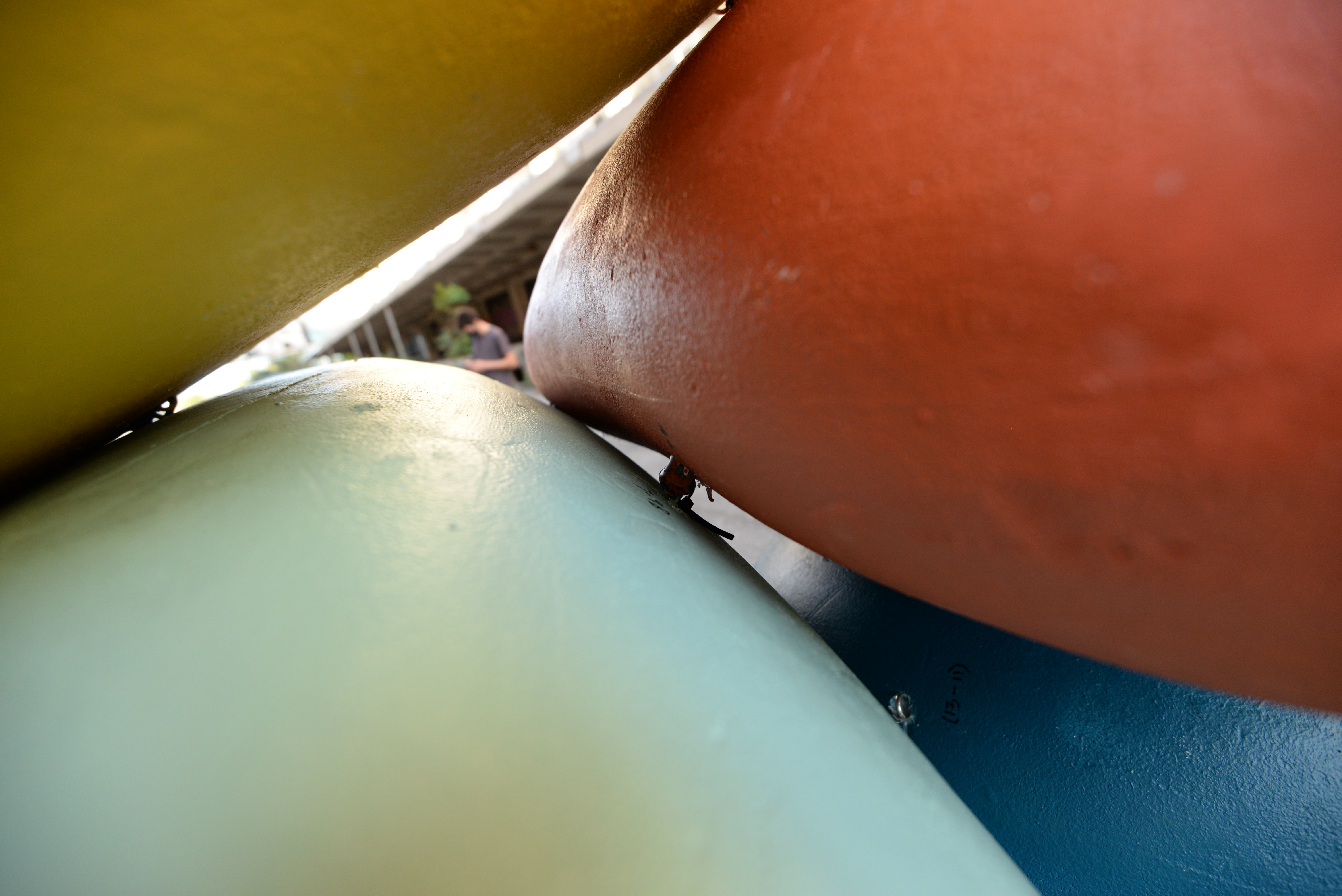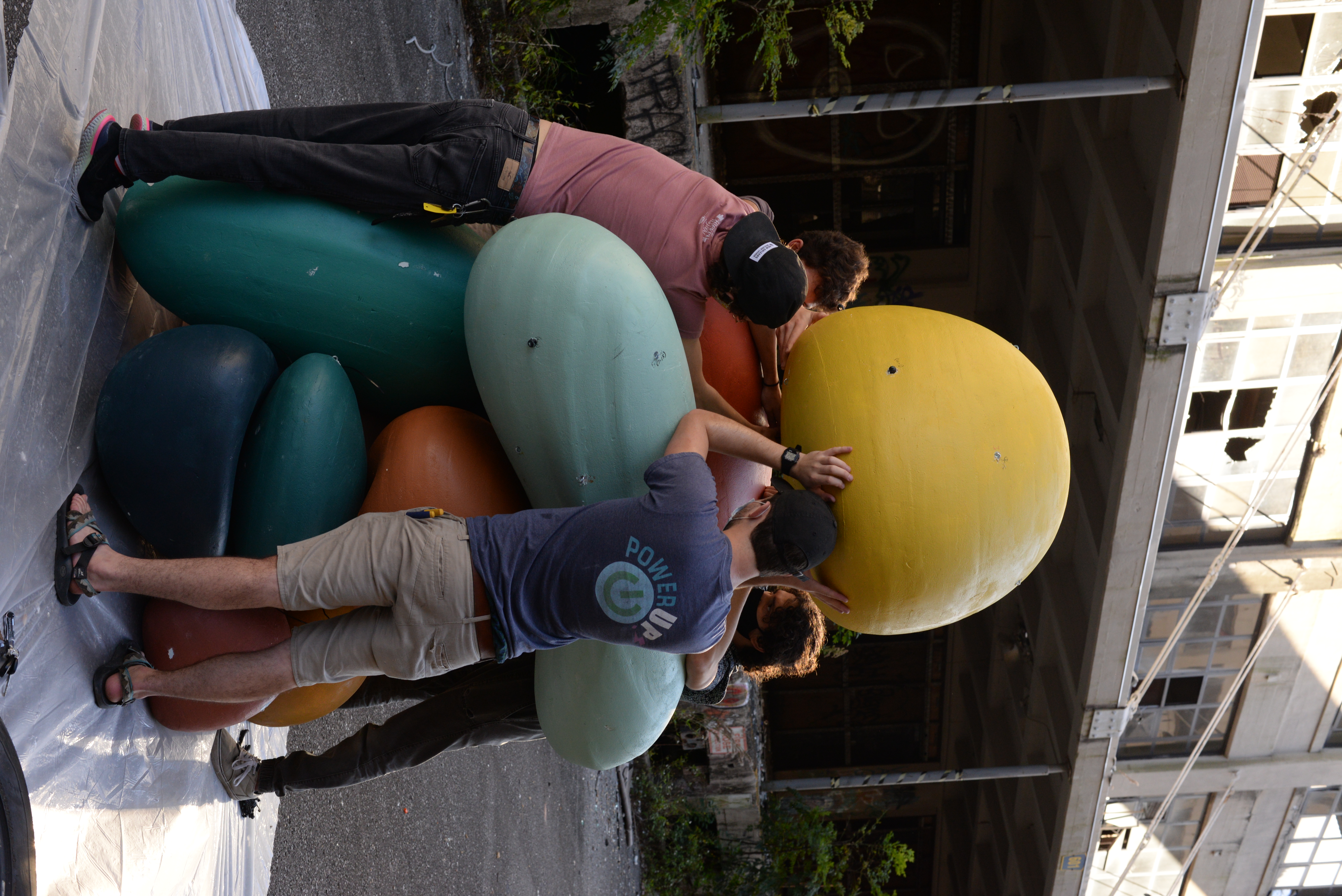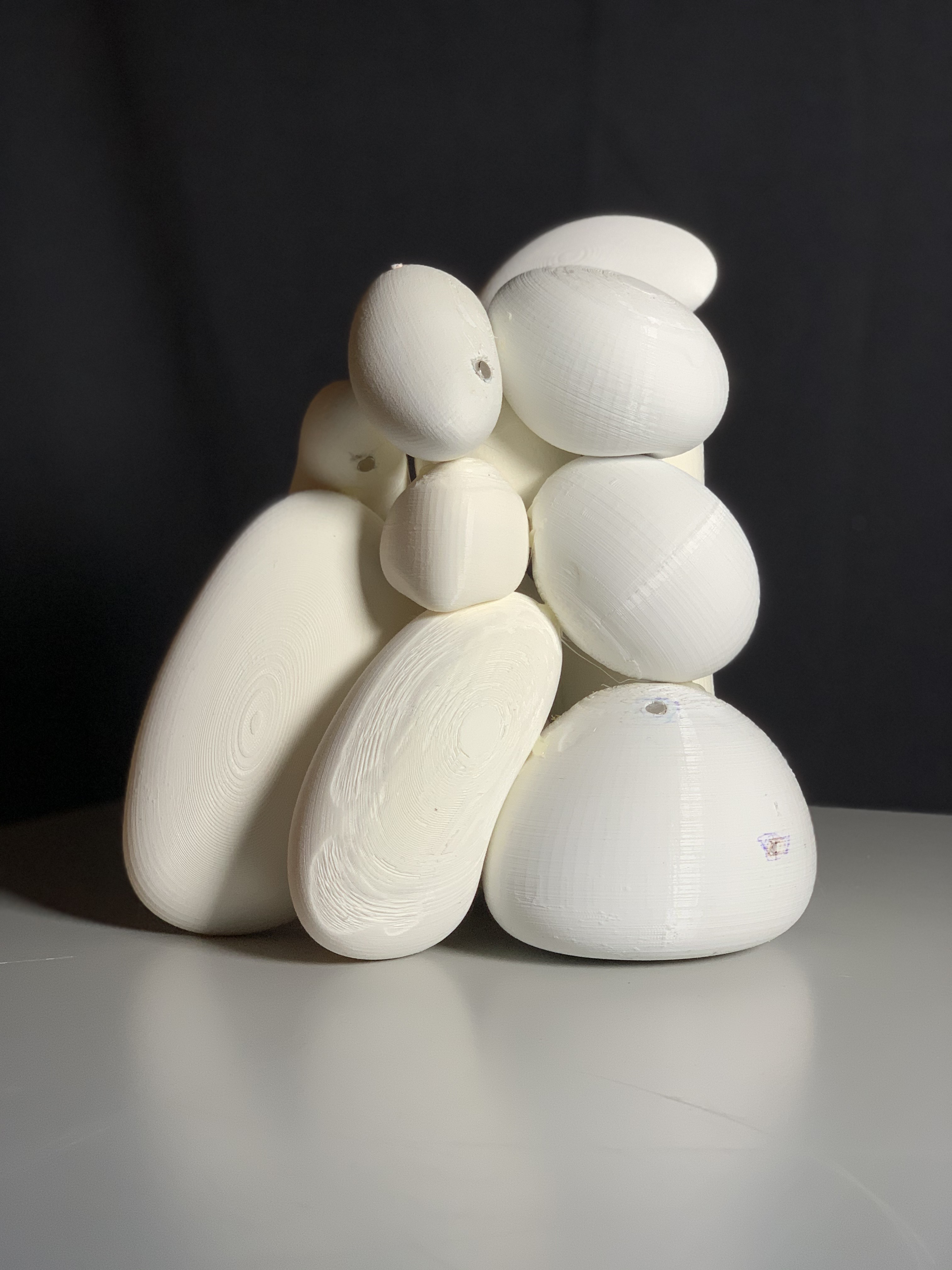 this exploration was done within the framework of standardization, so it became an exercise in using standard materials in unintended and provocative ways. for instance, the beans are “sliced” into 3” thick pieces to be cnc routed from xps insulation boards, covered in wall texture and interior paint, and held together with tent stakes, drywall anchors, eye-hooks, and zipties. this divergence from conventional use of the tools was driven by the material properties of the beans (their strength in compression, weakness in tension, etc.) and the design intention to avoid external structure.